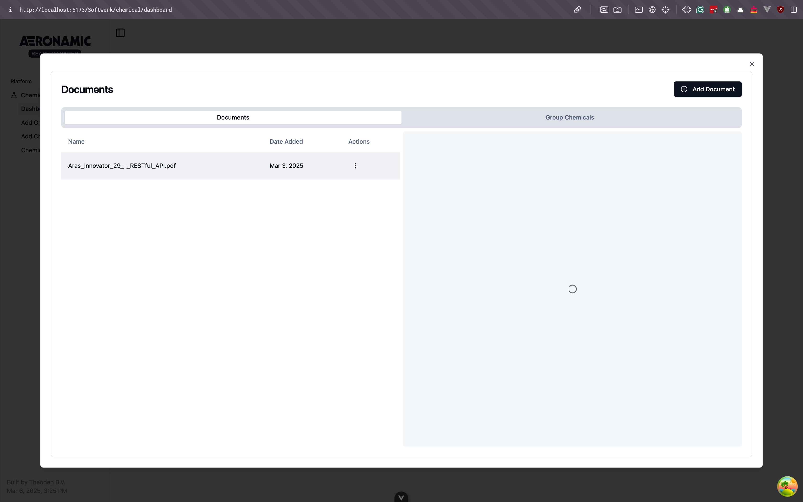 Aeronamic Chemical Manager is a web application that helps the client to manage their chemical inventory. The application is built with VueJS and ArasInnovator. The application is a platform where the client can manage their chemical inventory, create chemical reports, and manage their chemical storage. The application is currently in development and will be internally deployed in 2025. I am responsible for the development of the website and the backend and maintaining and updating the application as the client needs.